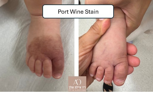 - כתמים קפילריים (port wine stain) – כתמי לידה בגוון אדום יין- סגול